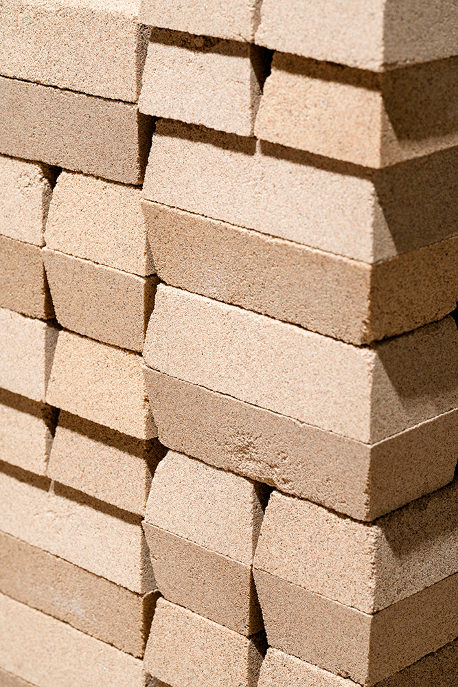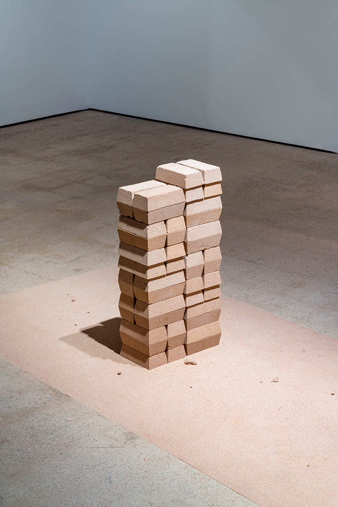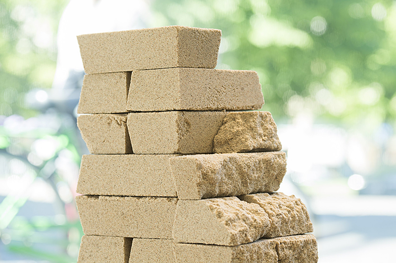 Sand, pressed sand blocks, cloth, plastic film, clue